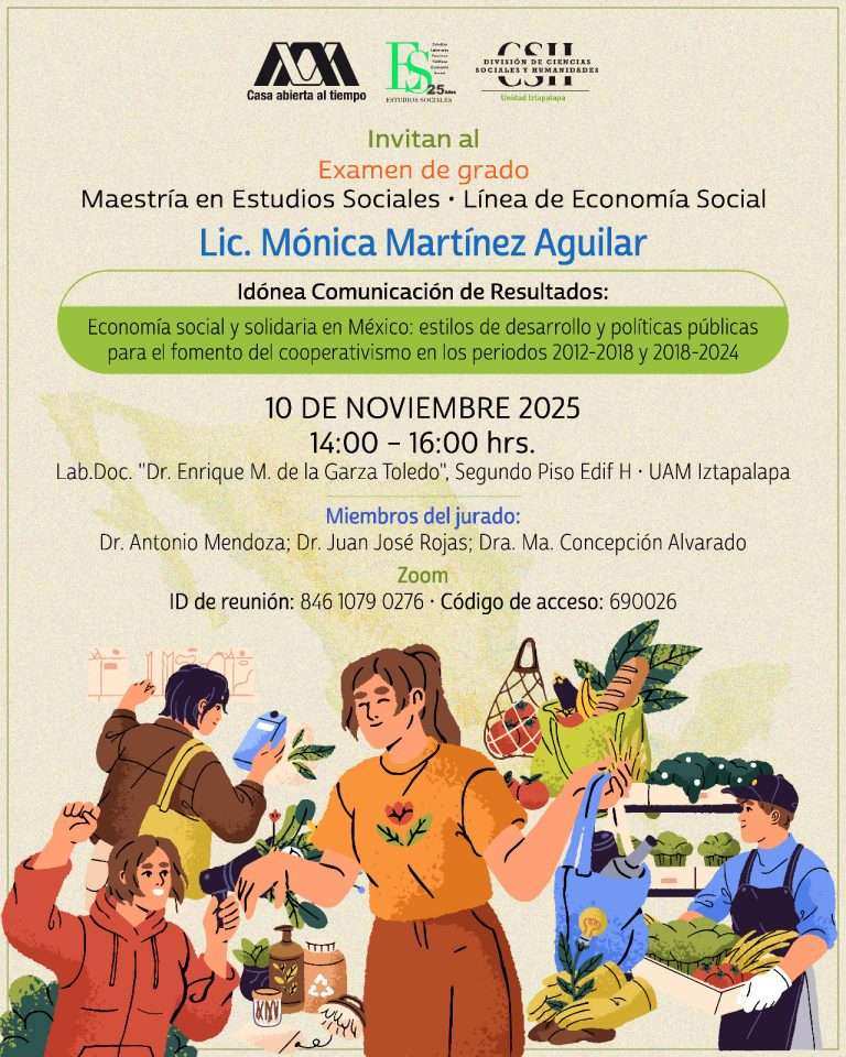 La línea de Economía Social del Posgrado en Estudios Sociales, los invita al Examen de Grado de la Lic. Mónica Martínez Aguilar